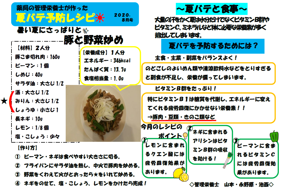 8月のテーマは「夏バテ予防レシピ」!