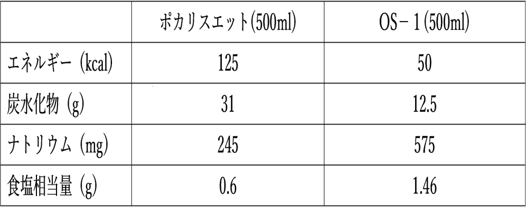 OS―1はポカリスエットより糖分が少なく、塩分が多く構成されています。