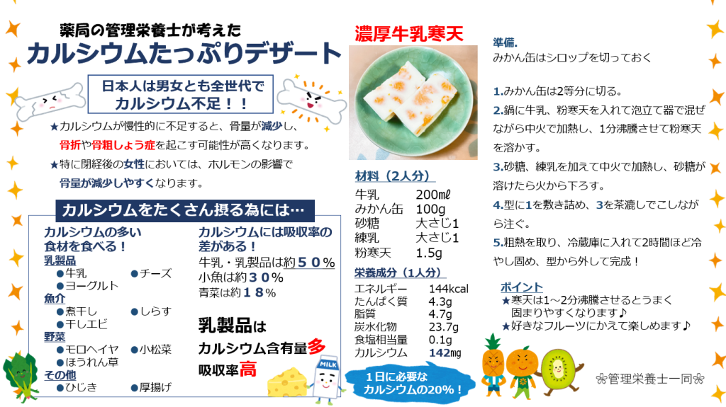 管理栄養士のおすすめレシピ♪カルシウムたっぷりの濃厚牛乳寒天