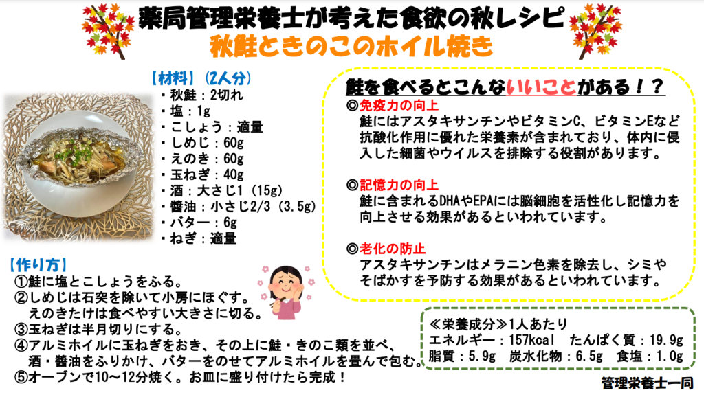 9月初旬のレシピは、秋鮭ときのこのホイル焼きです!