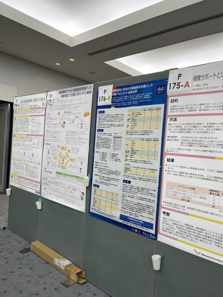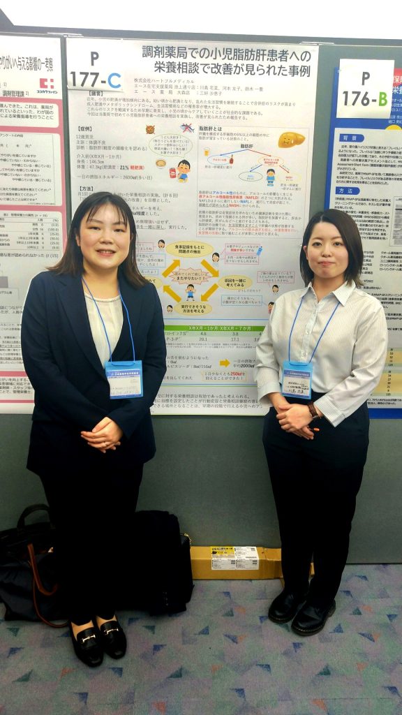 多くのセミナー・展示等の発表がある中、当薬局の管理栄養士2名がポスター発表を行い、日頃の薬局管理栄養士としての活動を多くの参加者と共有しました。