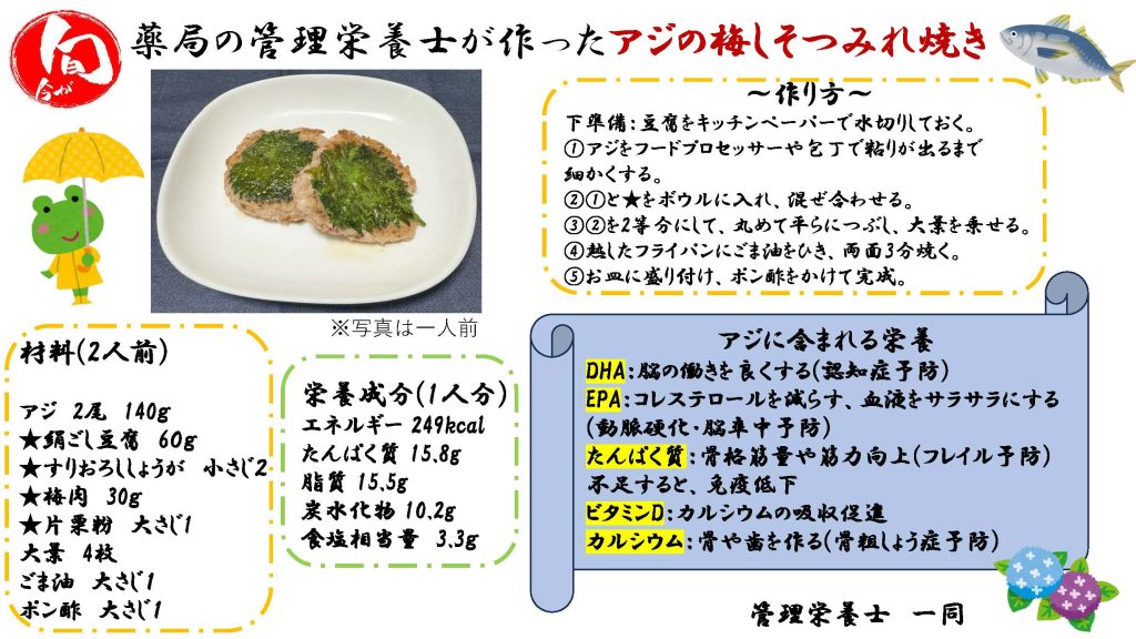 今回は6~8月が旬のアジを使った梅しそつみれ焼きのレシピをご紹介します!