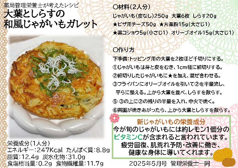 管理栄養士のおすすめレシピ♪大葉としらすの和風じゃがいもガレット🥔