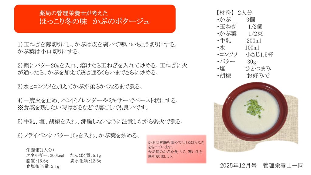 管理栄養士のおすすめレシピ♪ほっこり冬の味 かぶのポタージュ