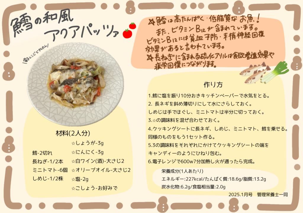 管理栄養士のおすすめレシピ♪鱈の和風アクアパッツァ🐟